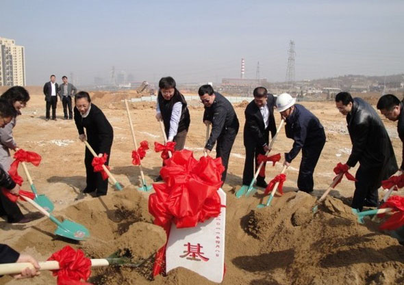 奠基儀式的工地上彩旗舞動、爆竹聲聲、一片歡騰。主持人宣布奠基儀式培土環節正式開始后,各位領導及大連項目公司的全體員工一起來到奠基石前培土,現場掌聲雷動。